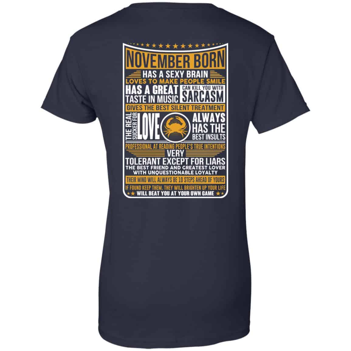 November Born Has A Sexy Brain Loves To Make People Smile T-Shirts, Hoodie, Tank