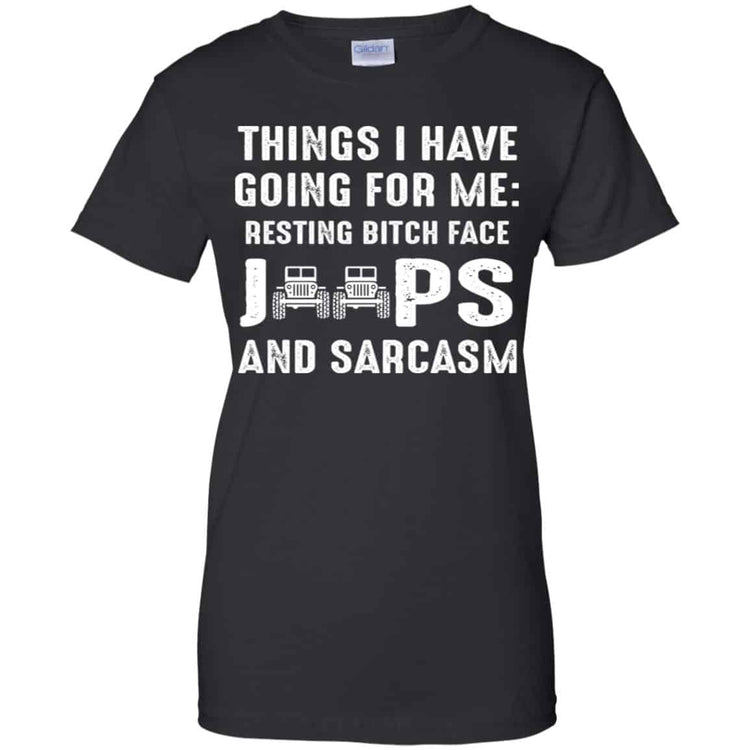 Things I Have Going For Me Resting Bitch Face Jeeps And Sarcasm Shirt, Hoodie, Tank